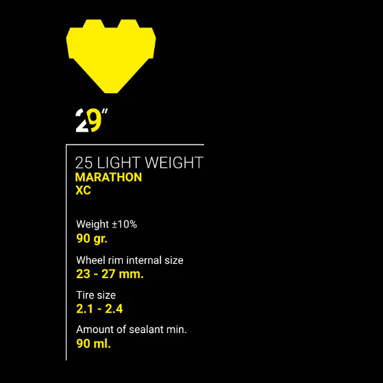 Mousse antipinchazos PANZER para XC 29” para llantas de 25 mm a 27 mm de ancho. Incluye botella de 125 ml de líquido tubeless PANZER.